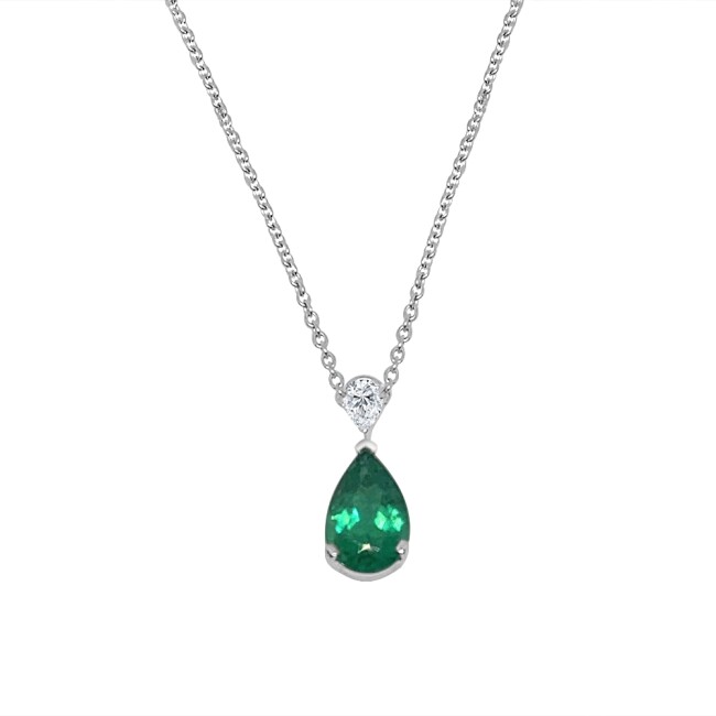 Pendentif Veron Roques en or blanc, émeraude et diamant