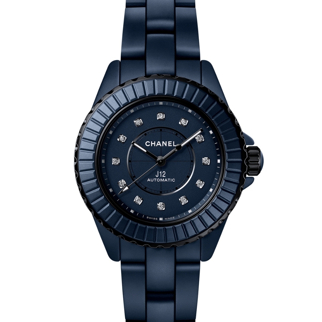 La montre J12 Bleu ne se contente pas d’un bleu profond, c’est un bleu mat, spécifique à ce nouveau modèle Chanel et qui lui confère un caractère unique. Son cadran est délicatement serti de diamants, qui viennent ponctuer l’élégance de la montre par de subtiles étincelles. Un jeu de lumière qui dialogue parfaitement avec les pavages diamants des bijoux, créant une continuité aussi précieuse que raffinée entre horlogerie et joaillerie.