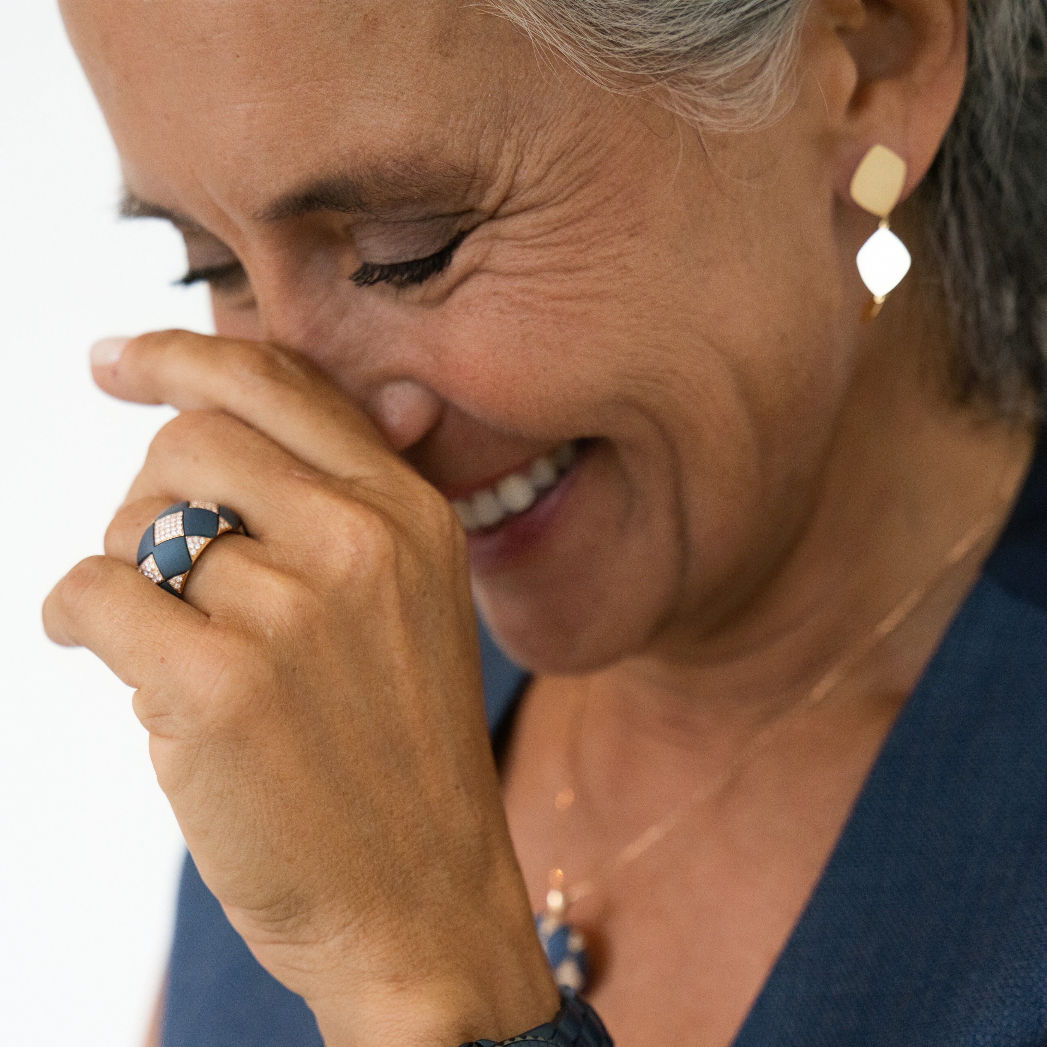 Bague Veron Roques Arlequin en or rose, titane bleu et diamants