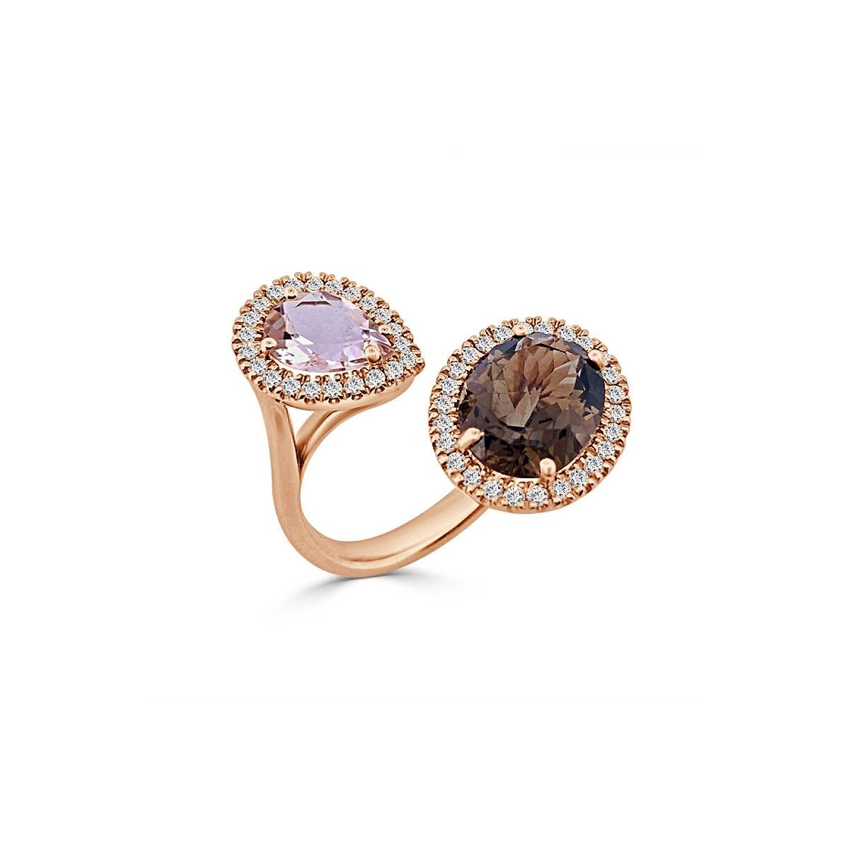 Bague Veron Roques Grain de Café en or rose, quartz, morganite et diamants
