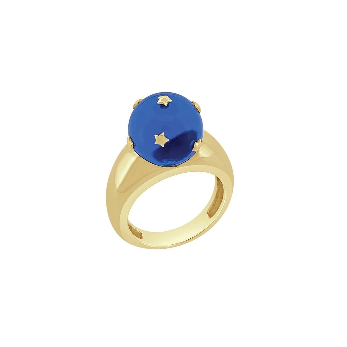 Bague Veron Roques Planète en or jaune et cristal bleu