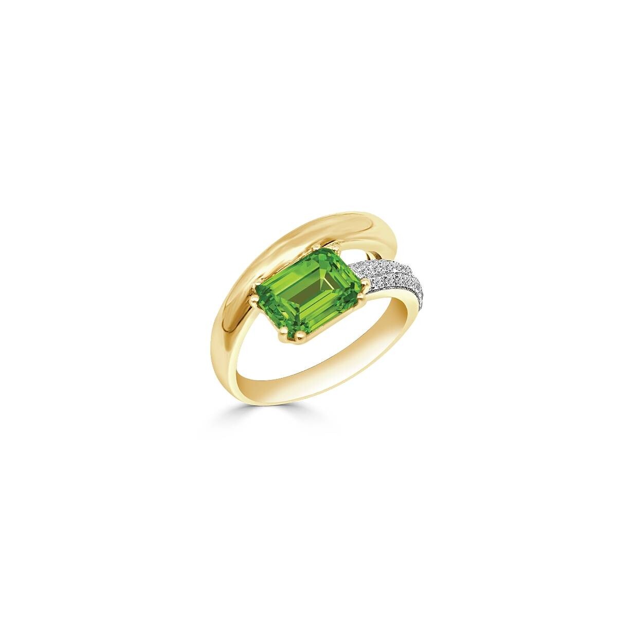 Bague Veron Roques Spirale en or jaune, péridot et diamants