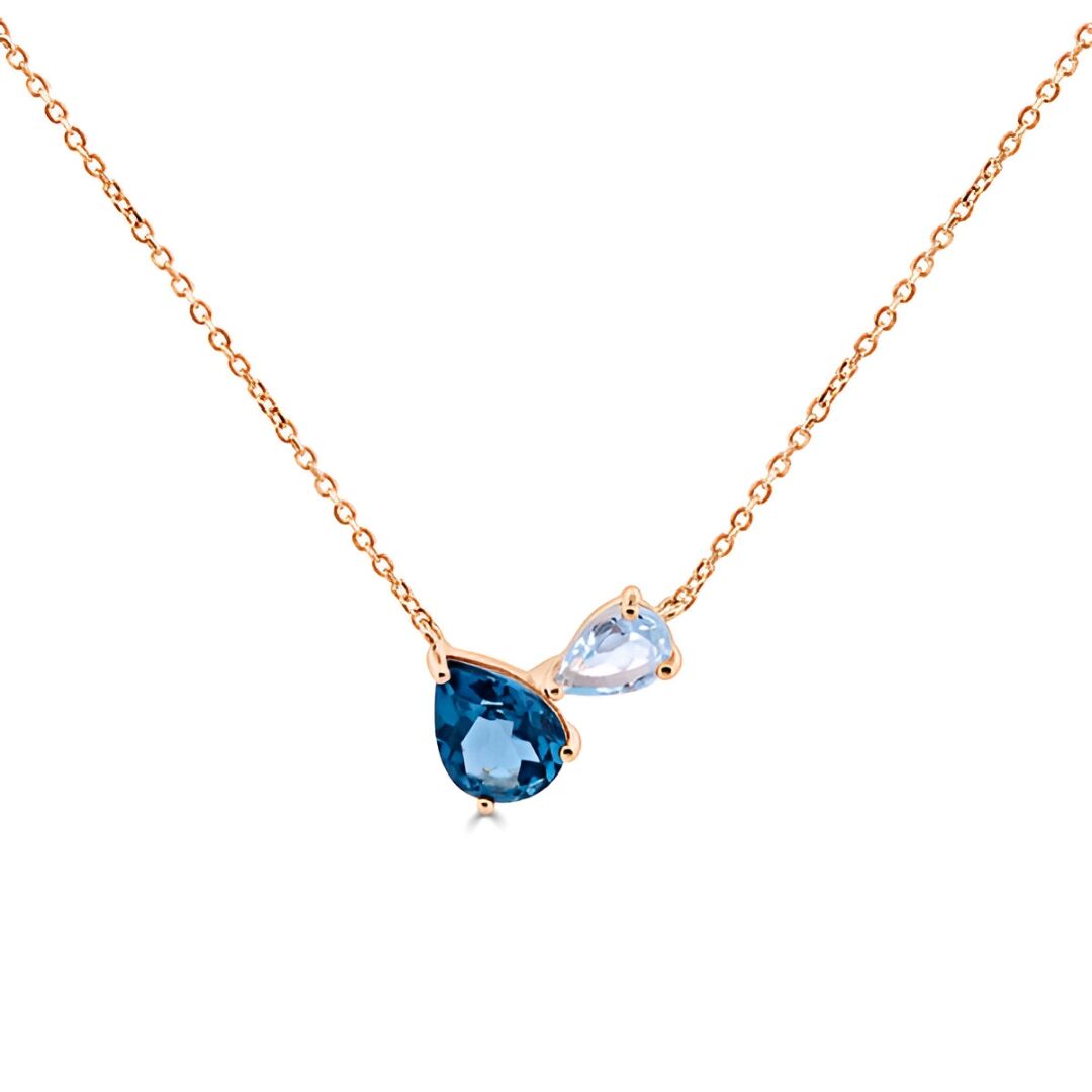 Collier Veron Roques Insolite en or rose, topaze bleue et topaze Blue London